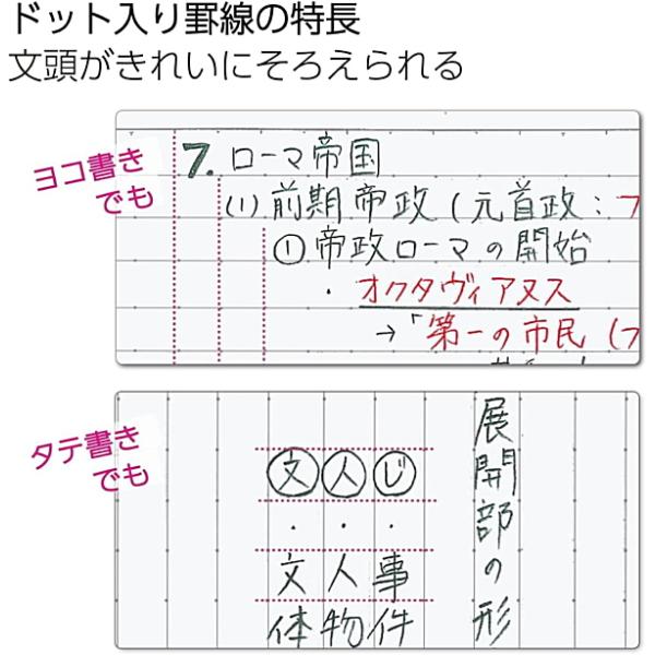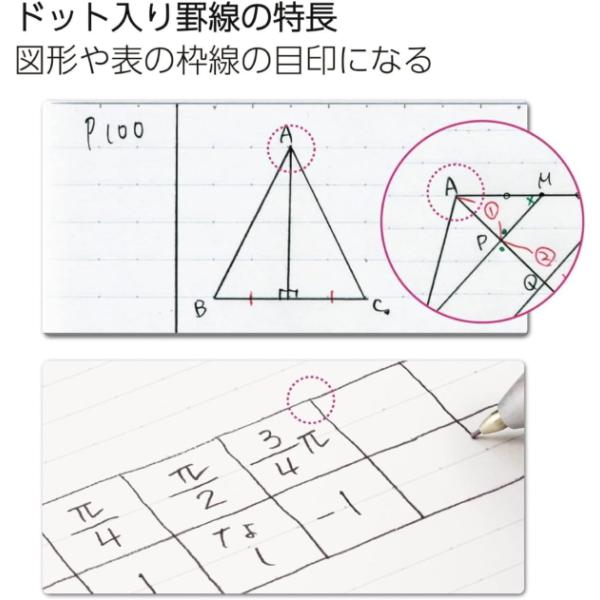 罫線上に等間隔に並んだドットを活用することで、ノートを美しく書くことができ、