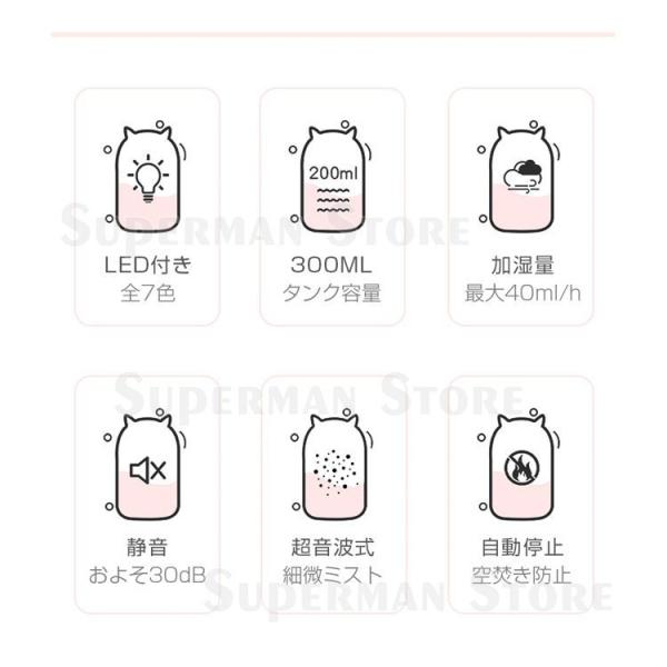 加湿器 スチーム式 超音波式 おしゃれ 静音 7色LEDライト 細微ミスト 自動停止 快適 オフィス 寝室 300ML 2022最新版 小型 車用 11