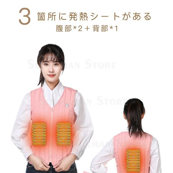 電熱ベスト 女性向け 3箇所発熱 温度調節 ヒーター内蔵 ヒートベスト 加熱ベスト USB給電式 防寒ベスト メンズ レディース 手洗い&洗濯機対応 寒さ対策