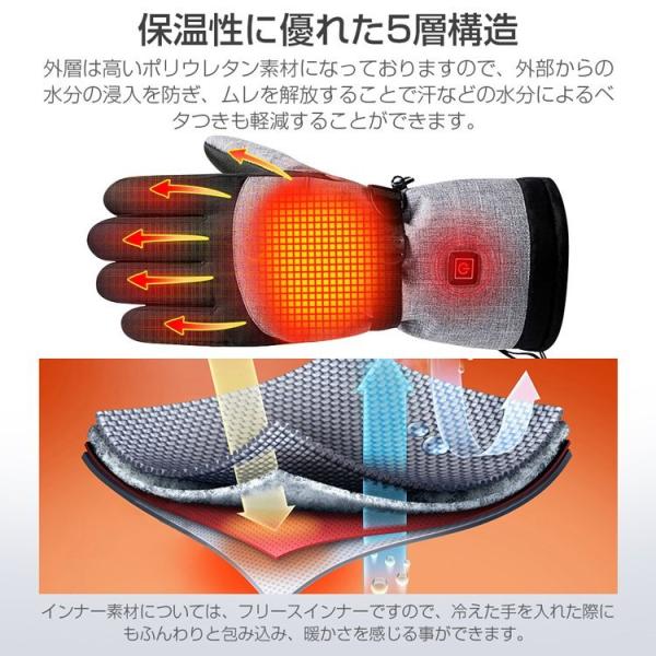 電熱グローブ 電熱手袋 即暖 省エネ 長時間作動 防寒対策 バイク 発熱 防水 防風 保温 電池・バッテリー対応 3段階調温 耐風撥水 usb 登山 作業 男女兼用