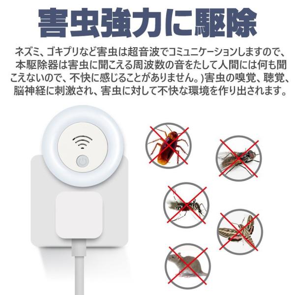 害虫駆除器 PSE認証済み 超音波駆除器 LEDライト付き 虫除け コンセント式 ネズミ ゴキブリ 蚊 虫 アリ ハエ ノミ クモ 静音 無毒無臭 安全 省エネ 害虫対策 10