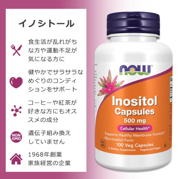 ナウフーズ イノシトール 500mg 100粒 ベジカプセル NOW Foods Inositol Veg Capsules ビタミンB群 めぐり サラサラ 健康サポート カフェイン好き