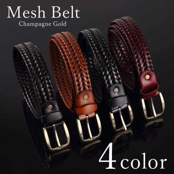 \ヤフー1位/\ドイツレザー/ ベルト メンズ メッシュ 本革 メッシュベルト 仕事 カジュアル ビジネス 編み込み 父の日 幅3.4cm 長さ115cm JINSELF ゴールド