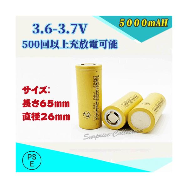 【PSE適合品届出済】26650充電池 26650 リチウムイオン充電池 バッテリー PSE認証済み 5000mAH