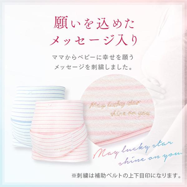 妊娠初期から後期まで使用できる、補助ベルト付きの妊婦帯です。