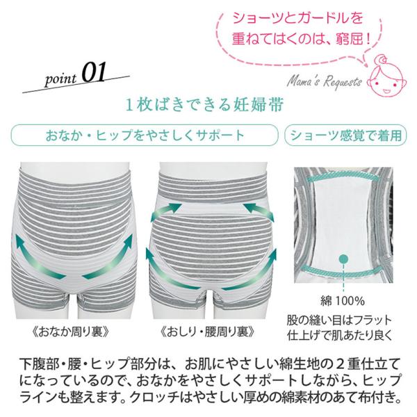「こんな妊婦帯がほしい!」という先輩ママの声から作られた、ショーツ感覚で履ける妊婦帯。