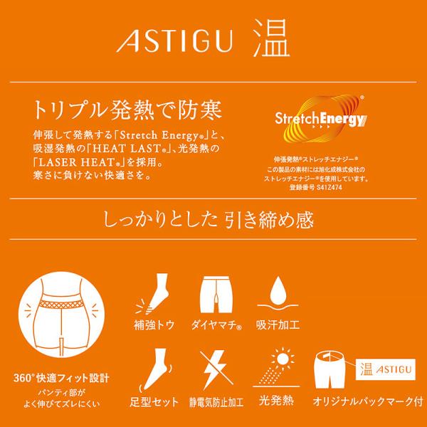 アツギ ストッキング 暖かい あったか アスティーグ 温 M-L・L-LL ベージュ 発熱 パンティストッキング パンスト 秋 春 寒い 就職活動 入学式 卒業式