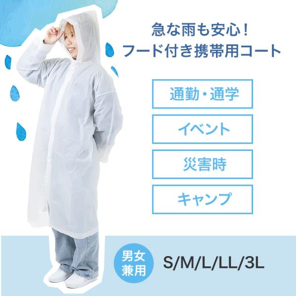 男女兼用 携帯に便利な半透明なレインコート