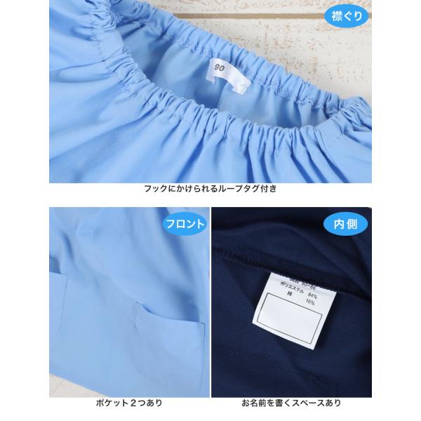 抗菌/防臭/撥水/シワになりにくい/襟元・袖口ゴム仕様(ゴム取り替え不可)/フロントポケット2つあり/お名前を書くスペース