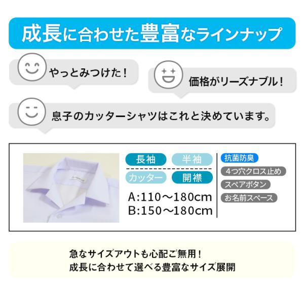 スクールシャツ 長袖 男子 開襟シャツ ホワイト 学生 フォーマル 無地 大きいサイズ 110cmA〜180cmB B体 学生服 ワイシャツ 高校 学校 男の子 (在庫限り)