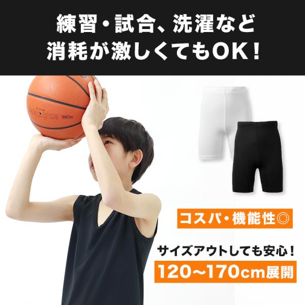 キッズ バスケ インナー 3分丈 スパッツ 紐付き ジュニア 120 130 140 150 160 170cm バスケットボール アンダーパンツ スポーツインナー レギンス (在庫限り)