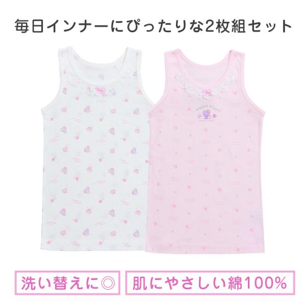 綿100% キッズ タンクトップ 女の子 下着 2枚組 子供 肌着 インナー 100cm 110cm 120cm 130cm ノースリーブ シャツ 女児 子ども 小学生 アンダーウェア