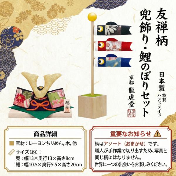 五月人形 兜飾り 鯉のぼり セット コンパクト おしゃれ ちりめん 友禅柄 端午の節句 室内 日本製 リュウコドウ