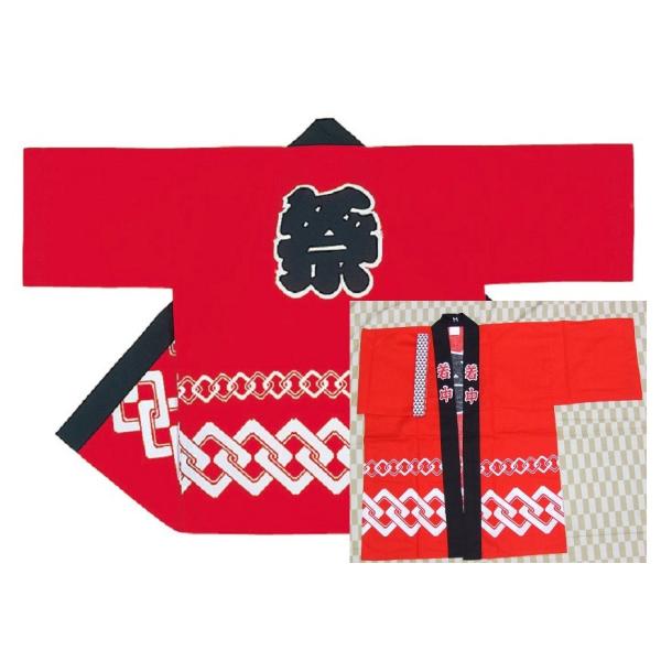 まつり半纏(祭りL寸)祭り帯付 クリックポスト出荷(送料無料)祭はっぴ ハッピ 大人法被 赤、黒、青