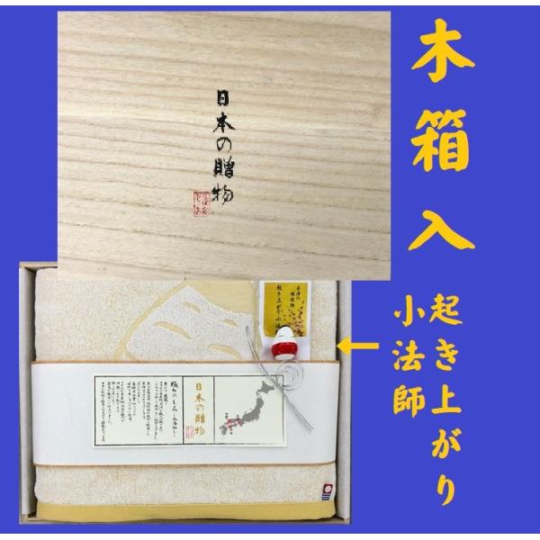 今治バスタオルギフト 木箱入り 木箱入 縁起物 起き上がり小法師 婚礼、内祝い、お祝い、快気祝い 白虎隊のふるさと会津の特産品