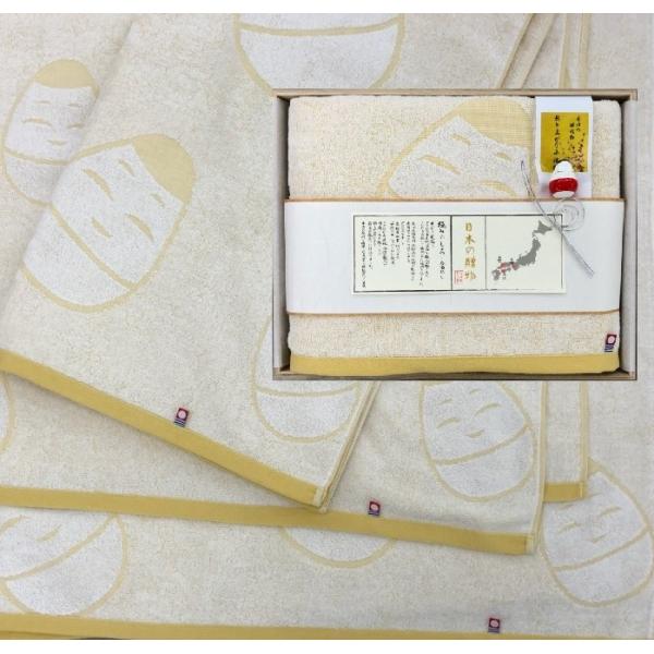 今治産バスタオルに会津の起き上がり小法師を織込みギフトに!