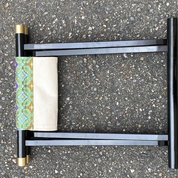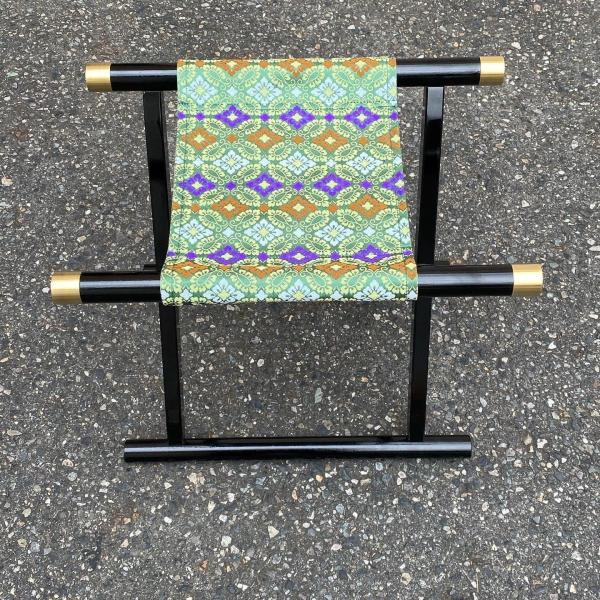 時代劇で使われる武将用の床几材質:ブナ塗装:ウレタン飾り金具:真鍮座布:帆布+新大和錦サイズ 横棒 45cm 開き 31cm 高さ 43cm耐荷重:100kg神社で神職用の胡床としても使われています。同じものがどこかの映画で出てくるかも?