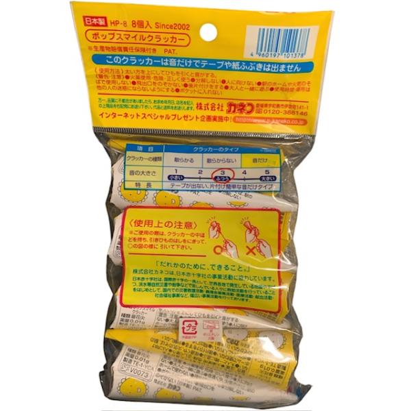 ポップスマイルクラッカー 音だけクラッカー 8個入 カネコ パーティグッズ 誕生日会