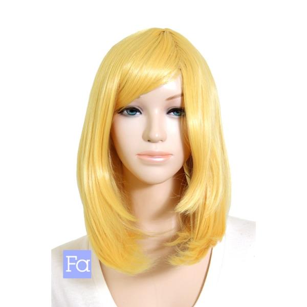 ミディアム 「レモンイエロー」「ウィッグネット付」 黄 イエロー 黄色 コスプレウィッグ ミディアムウィッグ 耐熱180℃(097 mi-npss78)