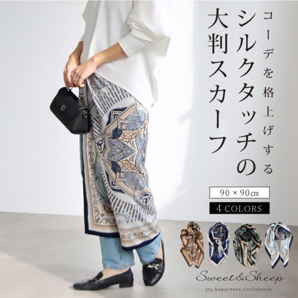 スカーフ 大判 柄 正方形 バッグスカーフ ショール ストール 小物 大人 春 夏 秋 冬 レディース Sweet&Sheep