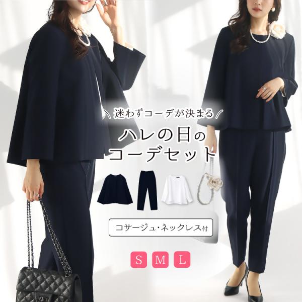 パンツスーツ 母親 40代 50代 服装 レディース おしゃれ セットアップ 30代 女性 春 3点セット 9号 11号 13号