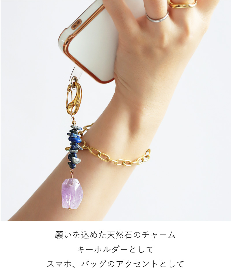 チャーム キーホルダー キーリング ストラップ 天然石 ストーン プレナイト アメジスト ルチルクォーツ ラピスラズリ トルマリン プレゼント お祝い ギフト