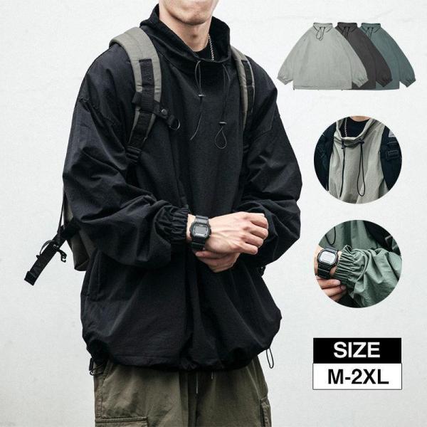 パーカー メンズ トップス ハイネック 春秋冬 プルオーバー 体型カバー マンパ アウター ウインドブレーカー 作業着 登山 防風 隠すポケッ