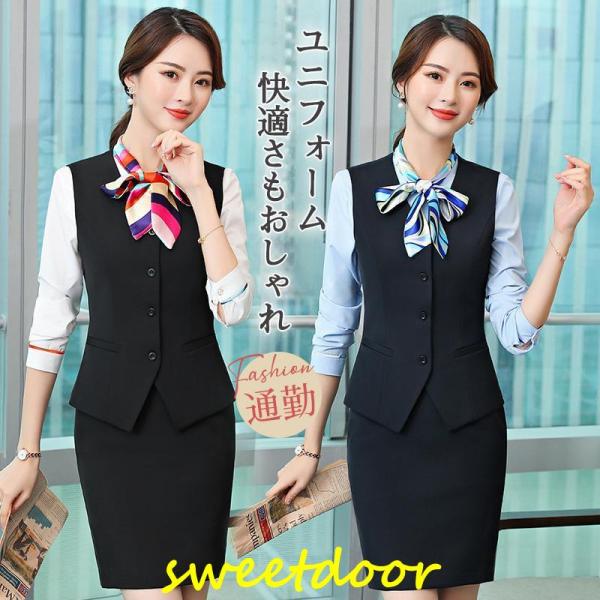 ユニフォーム エステ サロン制服 2点セット レディース 化粧品 ベスト ホテル ネイル 美容 歯科衛生士 系 クリニック スカート フロント