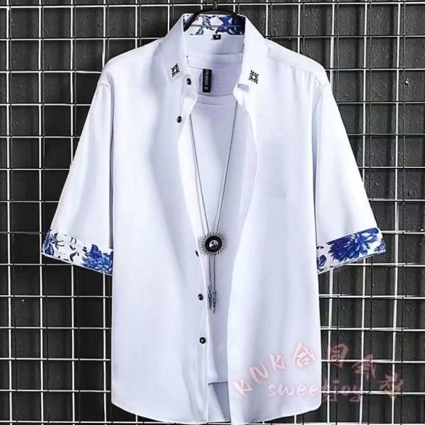 接触冷感7分袖シャツ メンズ ワイシャツ 大きいサイズ 七分袖 夏 カジュアル ボタンアップ ひんやり 快適 オフィス KNK 涼感素材夏ビジネスカジュアル爽やか