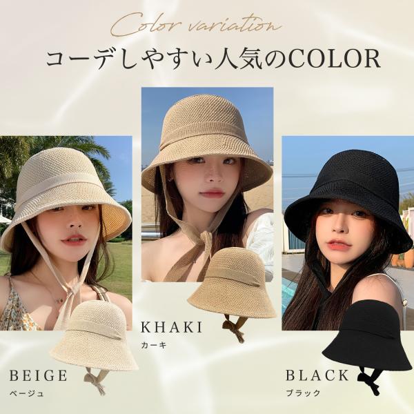 \期間限定価格/帽子 バケットハット ツバ広 小顔 UVカット あご紐 飛ばない 日よけ 折りたたみ シンプル 無地 麦わら レディース おしゃれ