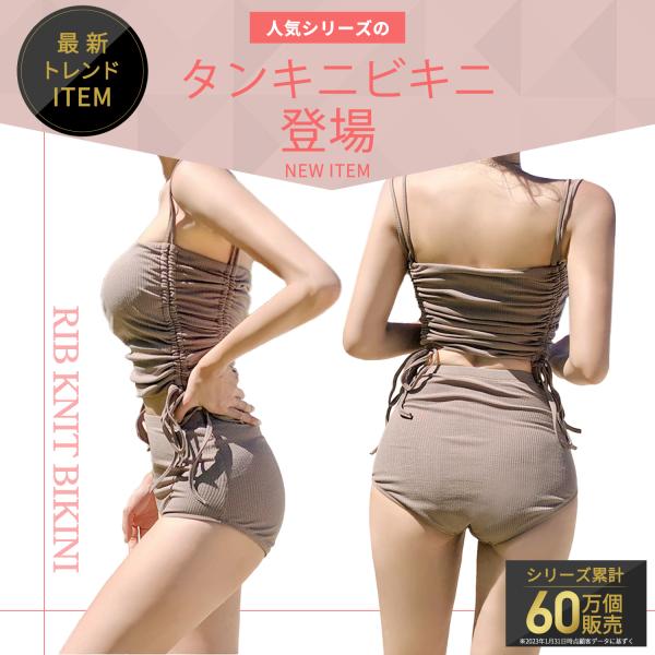 トレンド レディース 水着 ビキニ タンキニ リブニット