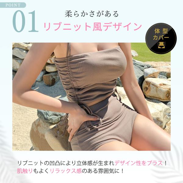 ・リブニット風素材の洋服見えトレンド水着