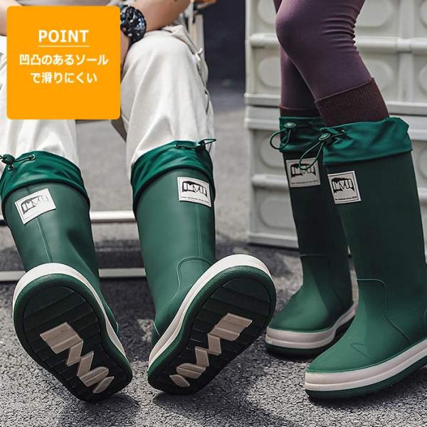 長靴 メンズ レディース レインブーツ ロング 雨靴 レインシューズ 完全防水 滑りにくい ゴムひも付き 大雨 キャンプ^bm1274^