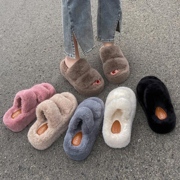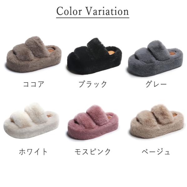 [SALE!期間限定]サンダル レディース ファーサンダル ふわふわ ルームシューズ ボア ファー 厚底 歩きやすい あったか もこもこ^bm1291^
