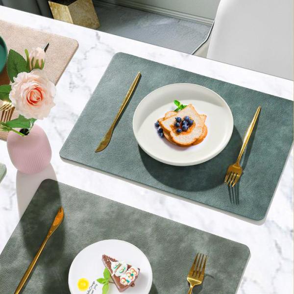 ランチョンマット 高質PUレザー 2枚セット マット リバーシブル 無地 和風 柔軟性 厚手 耐熱性 断熱 滑り止め[郵3]^bm1486^