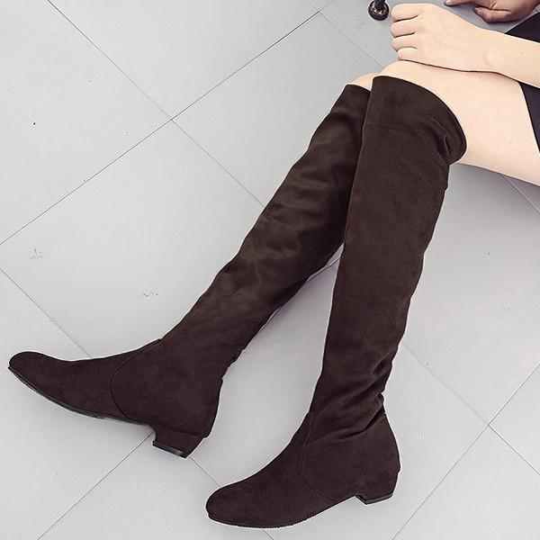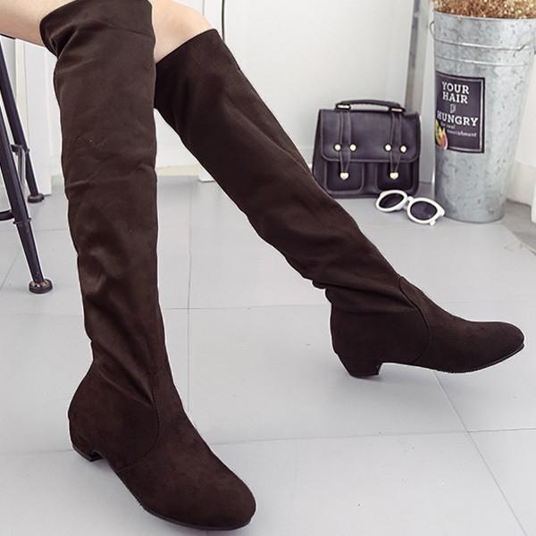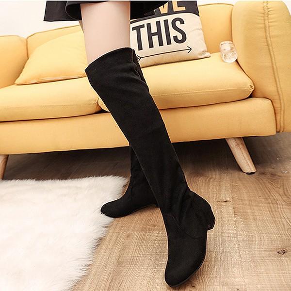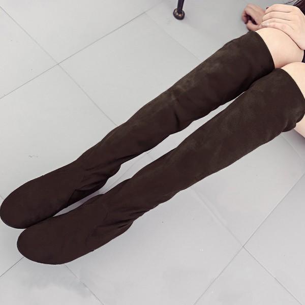 [1000円!クーポンで]ニーハイブーツ ローヒール 安い ロングブーツ スエード調 大きいサイズ 美脚 ^bo-596^