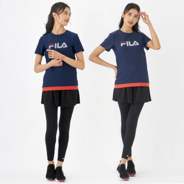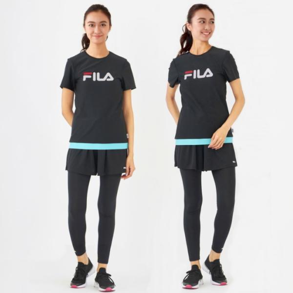フィットネス水着 レディース セパレート 体型カバー 半袖 大きいサイズ fila ブランド 50代 40代 30代 タンキニ おしゃれ フィラ めくれ防止 ジム プール