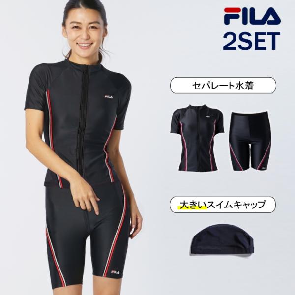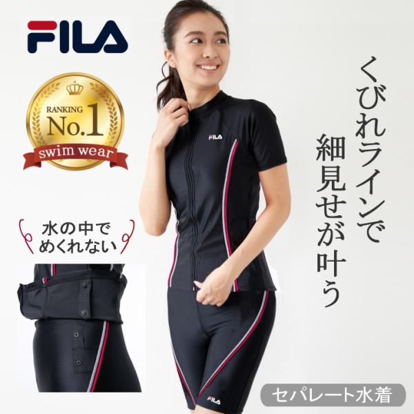 フィットネス水着 レディース セパレート 体型カバー 半袖 大きいサイズ fila ブランド 50代 40代 30代 タンキニ おしゃれ フィラ めくれ防止 ジム プール