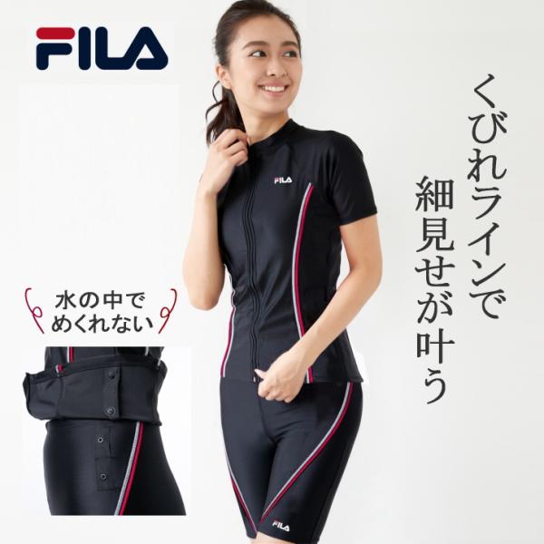 フィットネス水着 レディース セパレート 体型カバー 半袖 大きいサイズ fila ブランド 50代 40代 30代 タンキニ おしゃれ フィラ めくれ防止 ジム プール