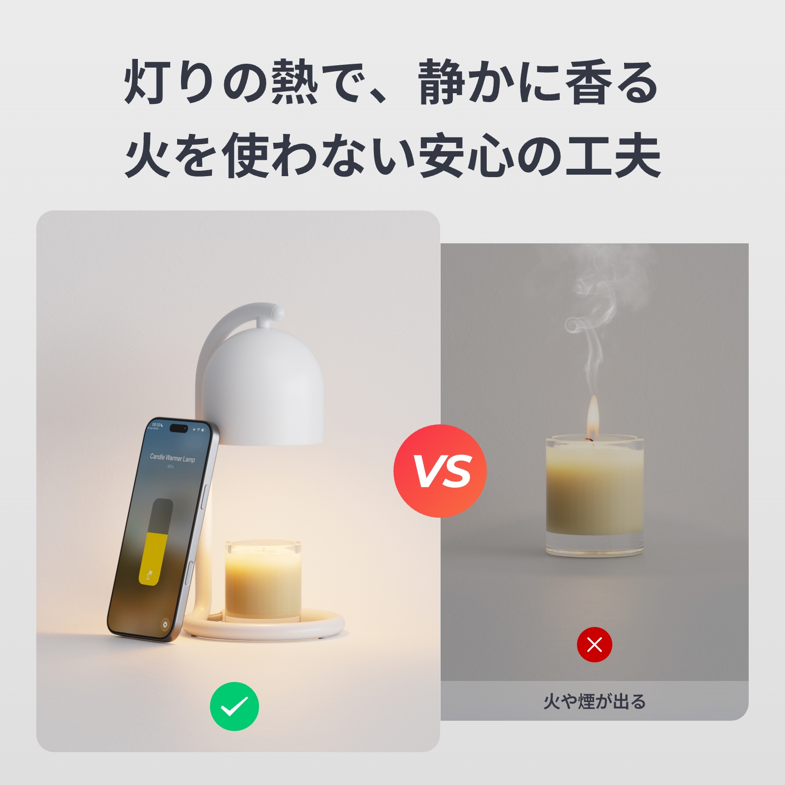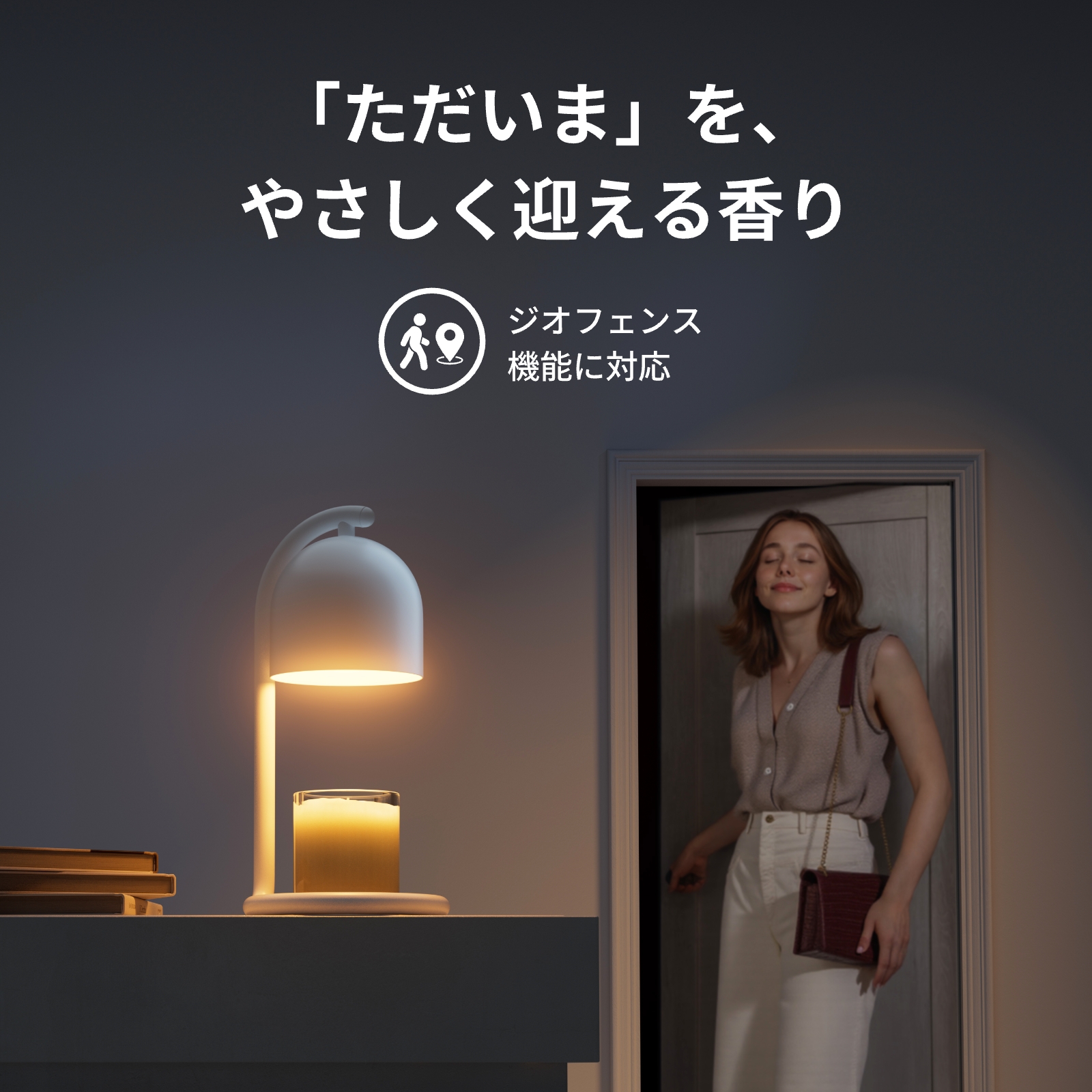 【世界初のスマートキャンドルウォーマー】香りの強さもタイマーもスマホや音声で簡単操作。触れずに空間が整い、くつろぎ時間をスマートに演出。