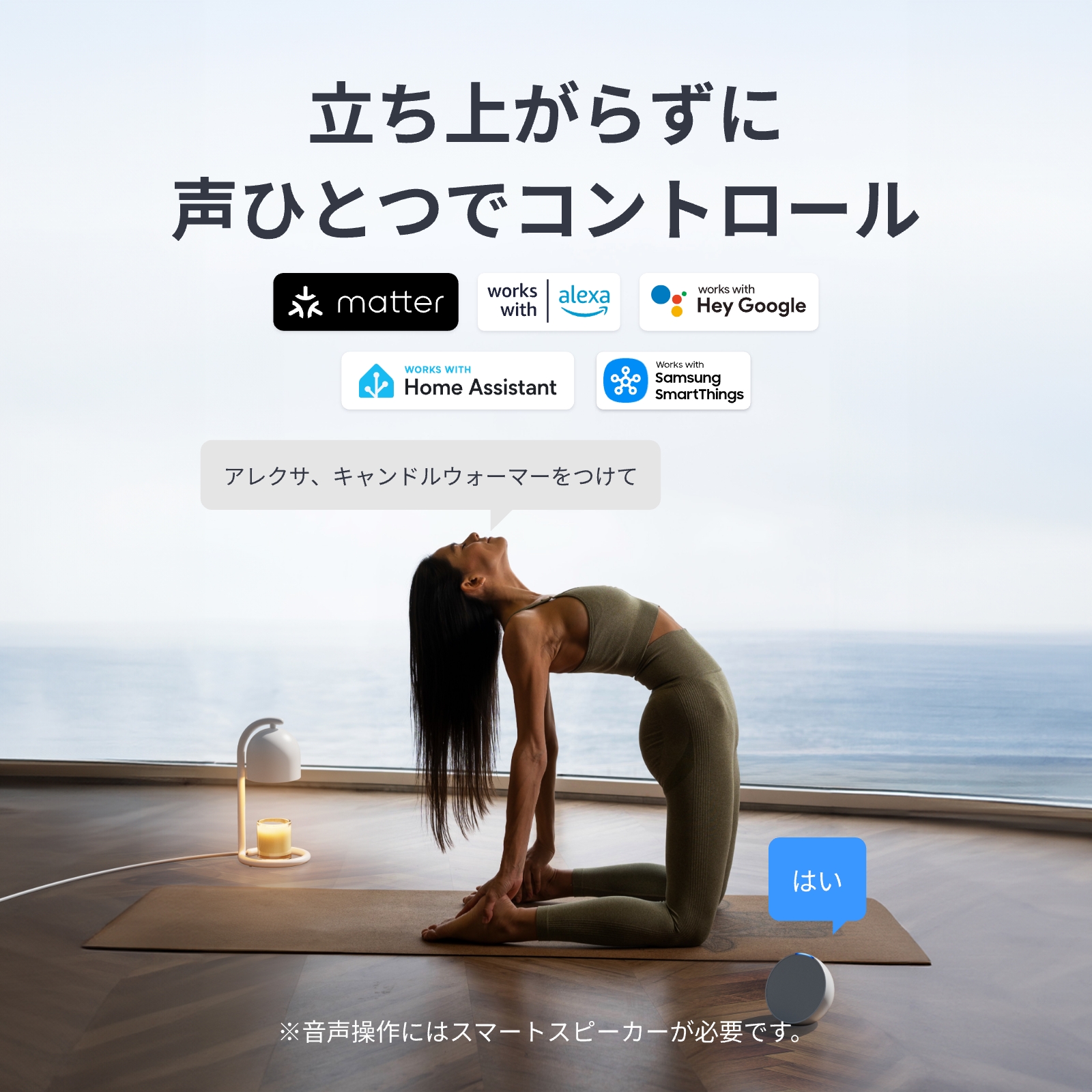 【Appleと香りがつながる、Matter対応キャンドルウォーマー】Matter対応でホームアプリに接続可能。調光・スケジュールも簡単。HomePodと連携すれば声だけで操作。Alexa・Google Homeなど主要プラットフォームにも対応。
