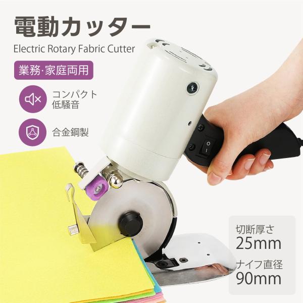 電動カッター 切断厚み25mm 2.5m電源コード 布裁断機 業務用 小型裁断機 手持ち式切断機 家庭用 コンパクト 200W 2400rpm 直径90mm刃 手持ち式裁断機 替刃付き
