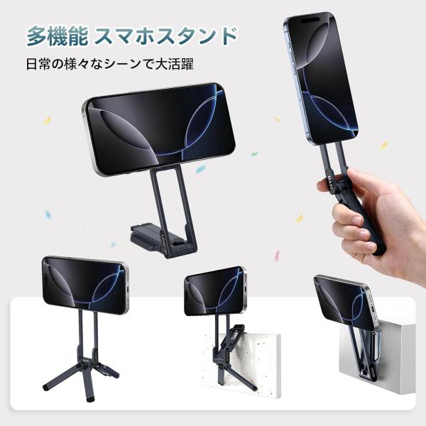 Ulanzi MA38 スマホ三脚 ミニ三脚 magsafeに対応 自撮り棒 スマホスタンド 携帯スタンド 折りたたみ 磁気マグネット iPhone Android ブラック