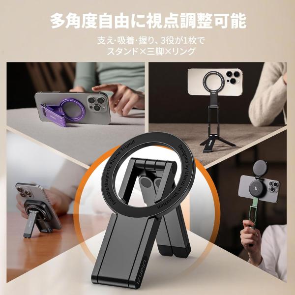Ulanzi MA60 スマホ三脚 ミニ三脚 magsafeに対応 自撮り棒 スマホスタンド ミニ携帯スタンド 携帯リング スマホグリップ 薄型軽量 横置き/縦置き