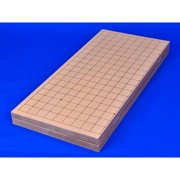 囲碁対局時に蝶番でテーブルに傷が付くのを少しでも防ぐ為に、折碁盤を広げても完全に平らな状態ではなく、囲碁盤の中央部分が少し浮くような造りになっています。