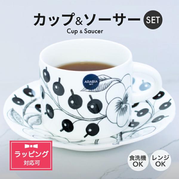 アラビア パラティッシ ブラック Black Paratiisi 6676(6677/6678) ティーカップ&ソーサー 耐熱 ギフト 結婚祝い ブラパラ ブラックパラティッシ 爆買