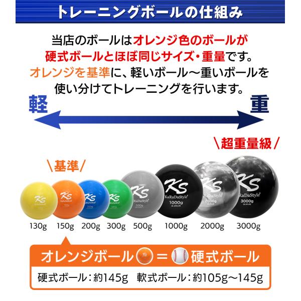 野球 トレーニング ボール ウエイトボール 球速アップ 練習 プアボール サンドボール 重い ボール ソフトボール 130g 150g 200g 300g 500g 1000g 6種セット