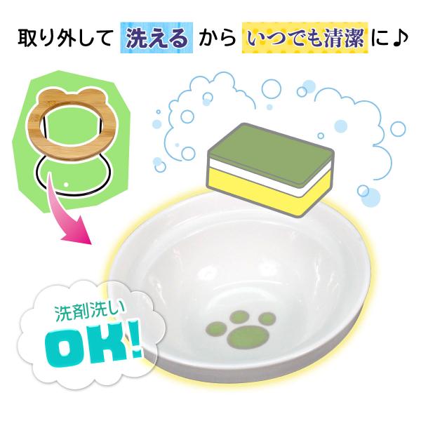 木製スタンド付きの高さがあるフードボウルなのでネコちゃん、ワンちゃんがエサを食べやすいようになっています。