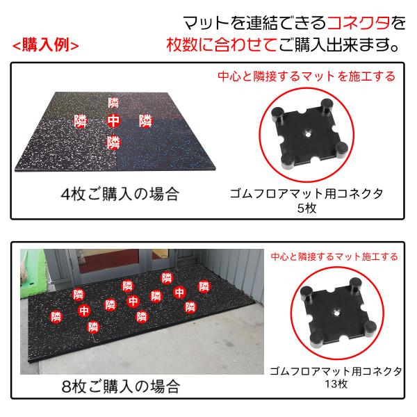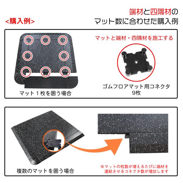 コネクタの必要数はゴムマットの枚数や、端材と四隅材を用いての施工する場合によって変わります。