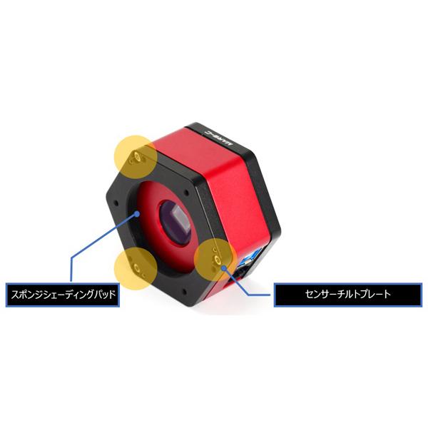 太陽を撮影する際などに生じるニュートンリングを軽減させるため、センサーをチルトできる機能を装備。これはディープスカイ撮像時に、よりフラットな画像を得るためにセンサーの傾斜を調整する際にも役立ちます。内部には高密度のスポンジシェーディングパッドが装備されており、外光を遮断するように設計されています。